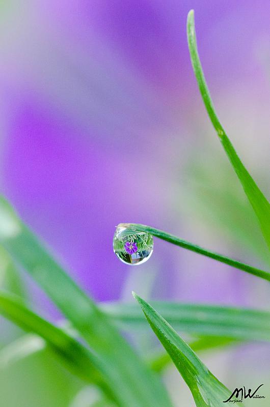 Bloempje gevangen in dauwdruppel