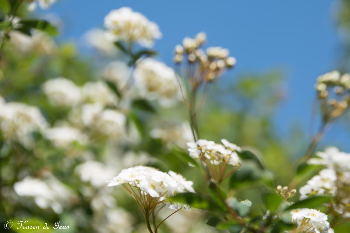 Bloesem in de struiken van mijn tuin. Uit artikelen en boek creatieve natuurfotografie inspiratie gehaald. Er is met opzet bewogen met de camera van links naar rechts. Om dit effect te creëren