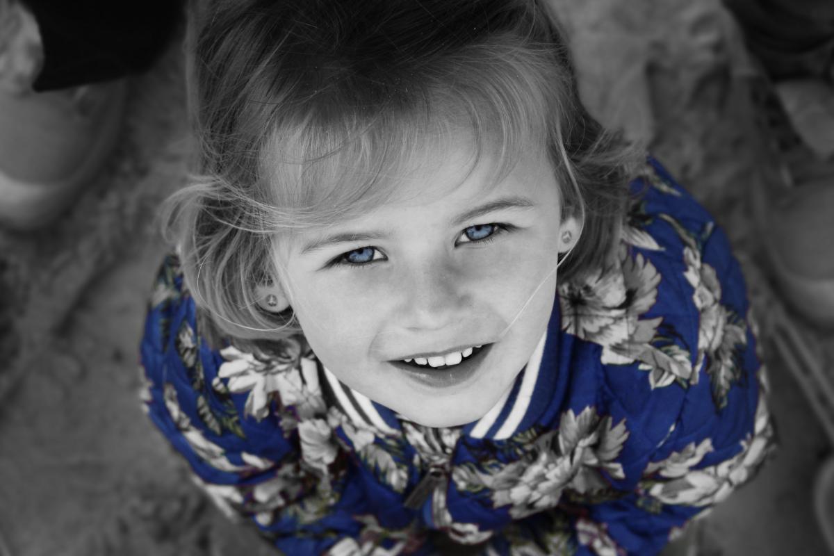 Een foto van een 5 jarig meisje op het strand op Ameland. Bewerkt met Photoshop.