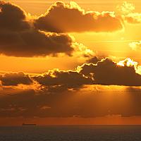 Boats and birds in an orange glow