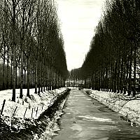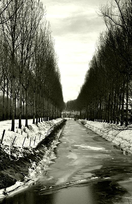 bomenrij in de sneeuw
