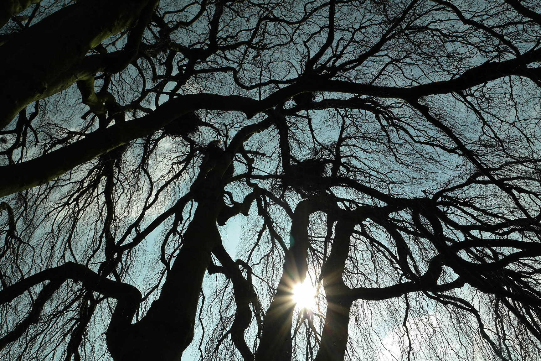 Boom met ooievaars vanuit onderen