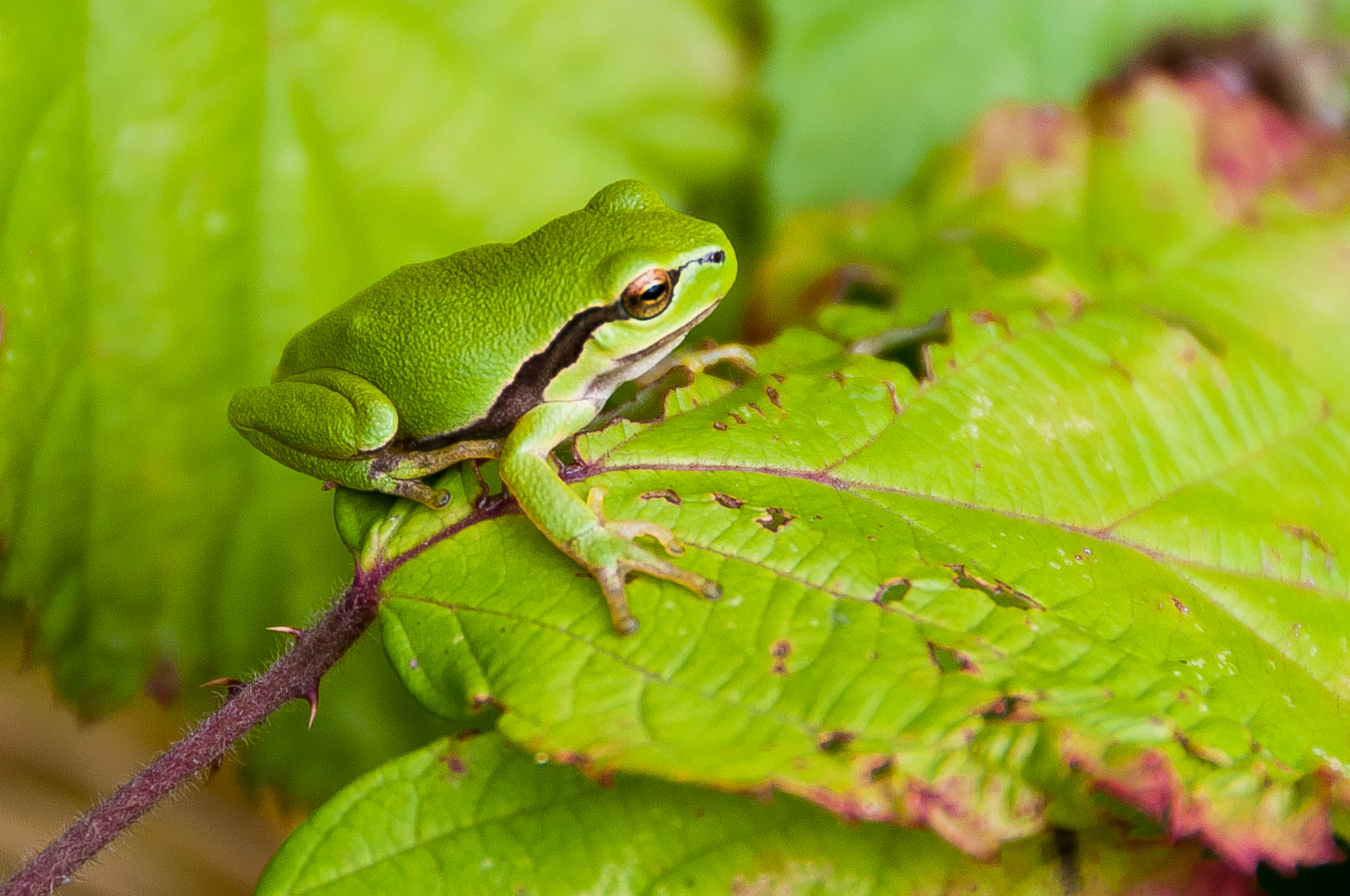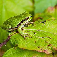 Deze Limburgse boomkikkertjes poseren geduldig op de struiken in het koude herstzonnetje. Ideaal dus voor een paar uurtjes fotograferen. Over een paar weken kruipen ze weer in de modder.