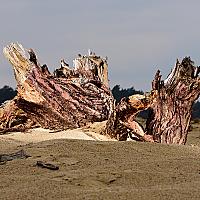 Boomstronk in het zand