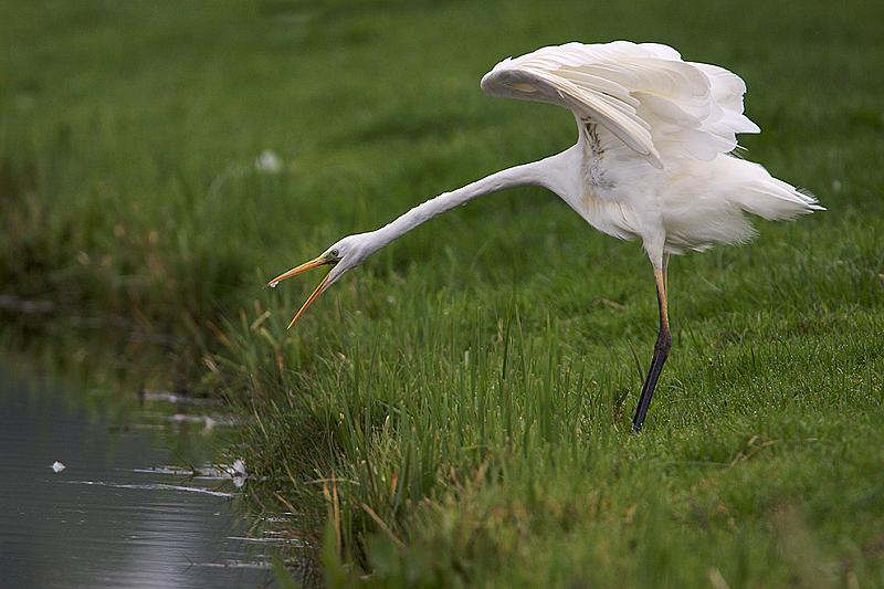 Grote Zilverreiger was boos omdat er een Meerkoet voorbij kwam.
