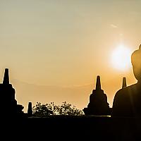 De Borobudur, de grootste boedhistische tempel op de wereld, staat in Yogyakarta Indonesië. Iedere ochtend wanneer het zonlicht boven de bergen uitkomt ontstaan er magische momenten op de tempel. Laat ik er nu een van zijn die deze magie heeft mogen vastleggen.