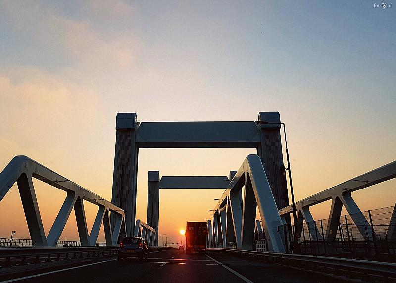 De Botlek Brug is de grootste ergernis in de regio, echter bij zonsondergang ziet de skyline er wel bijzonder mooi uit...