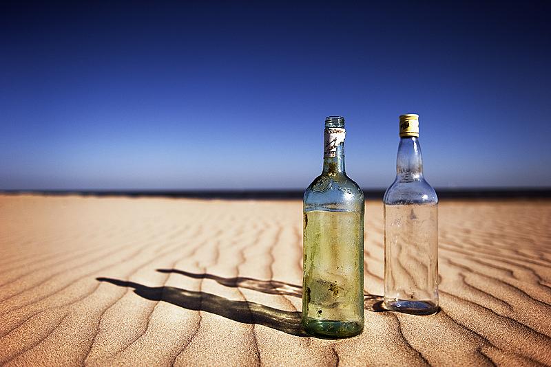 Bottles on sand....
