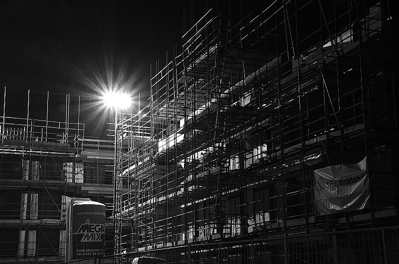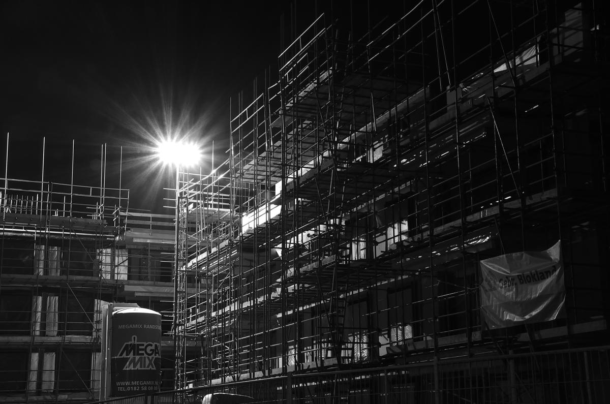 bouwplaats bij nacht