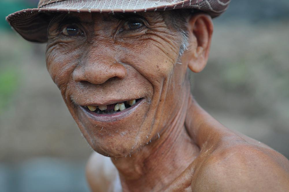 Het was in Tetebatu dat ik vanaf mijn balkon van mijn bungalow elke ochtend de Rinjani vulkaan zag, maar ook deze oude man,