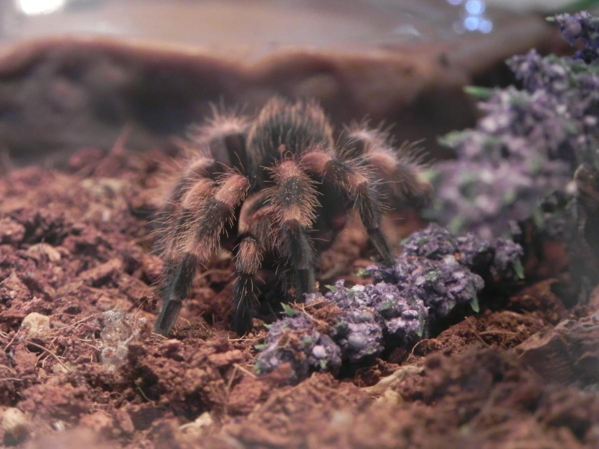 Sinds twee dagen heb ik een Nikon Coolpix P100, en dit is één van de eerste foto's die ik gemaakt heb om proberen uit te vogelen hoe het allemaal werkt. Op de foto is mijn Mexicaanse Roodknievogelspin Snooki te zien in haar terrarium. Omdat ze warmte nodig heeft van een gloeilamp, was de goede lichtinstelling moeilijk te vinden, maar dat heb ik met behulp van de instellingen wel weer een beetje weten te compenseren. Als sluitertijd had ik 1/15, met een diafragma van F4,5 en ISO 200.