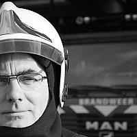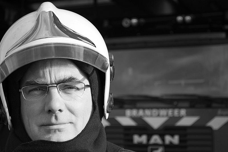 De foto heb ik gemaakt bij een brandweerkazerne. Daar heb ik een fotoshoot gemaakt voor een opdracht die ik moest uitvoeren voor een cursus. Deze brandweerman heeft er de tijd voor genomen, om voor mij te poseren in zijn brandweeruitrusting en voor een brandweerwagen.