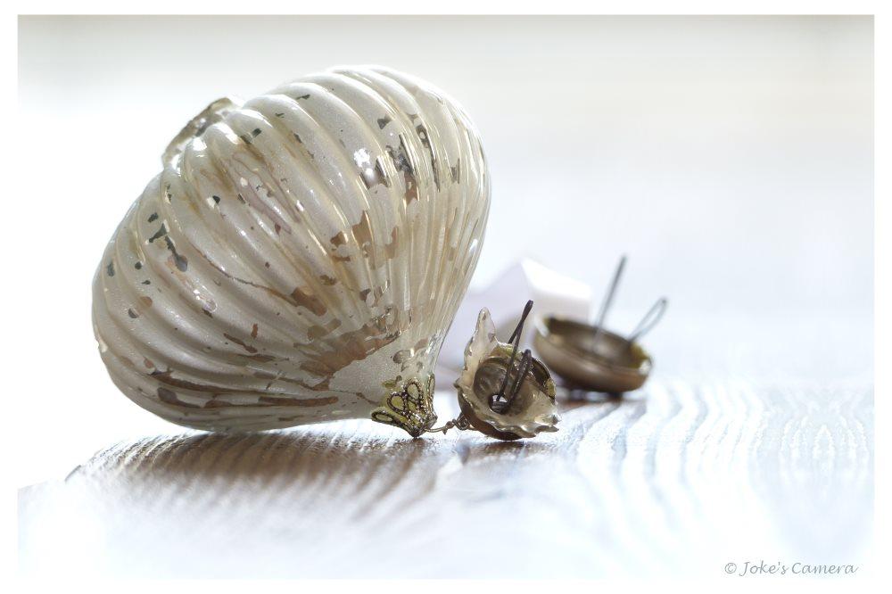 Soms laat ik een kerstbal vallen bij het uit de boom halen na de Kerst. Voordat ik ze weggooi fotografeer ik ze. Heel leuk om te doen.