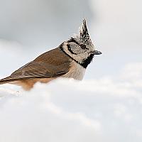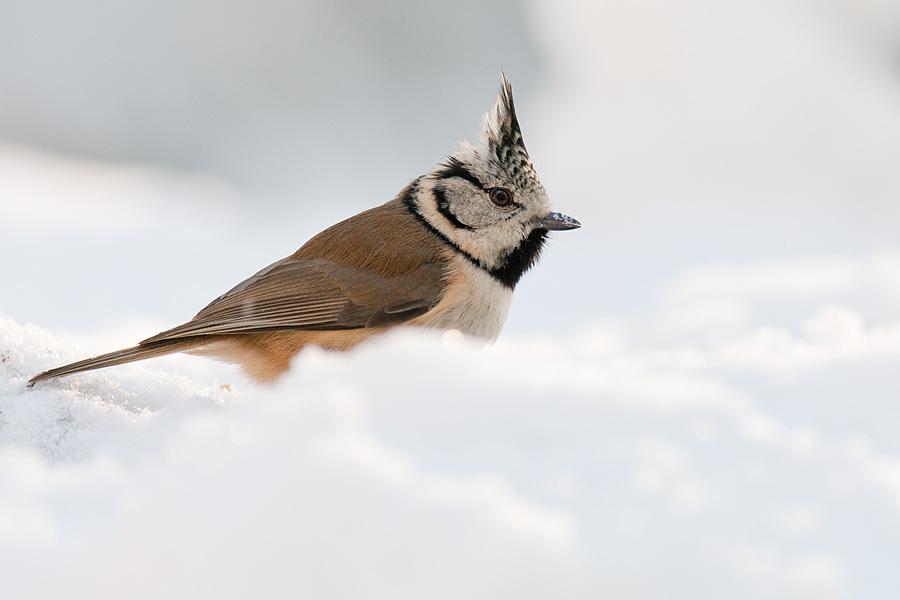 Vanuit mijn boshut kon ik deze kuifmees in de echt winterweer vastleggen!