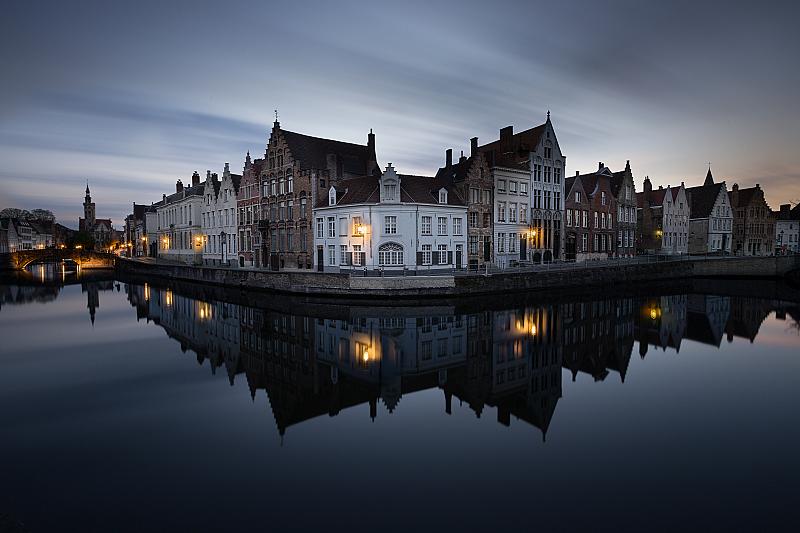 Brugge - Spiegelrei tijdens het blauwe uurtje