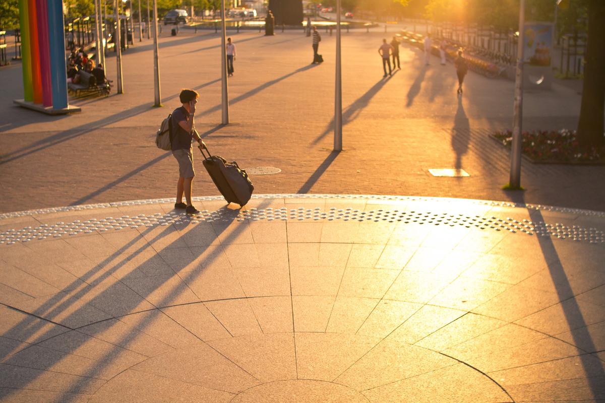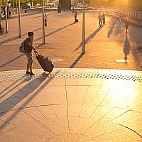 Zonsondergang aan de trappen van station Brussel Noord.