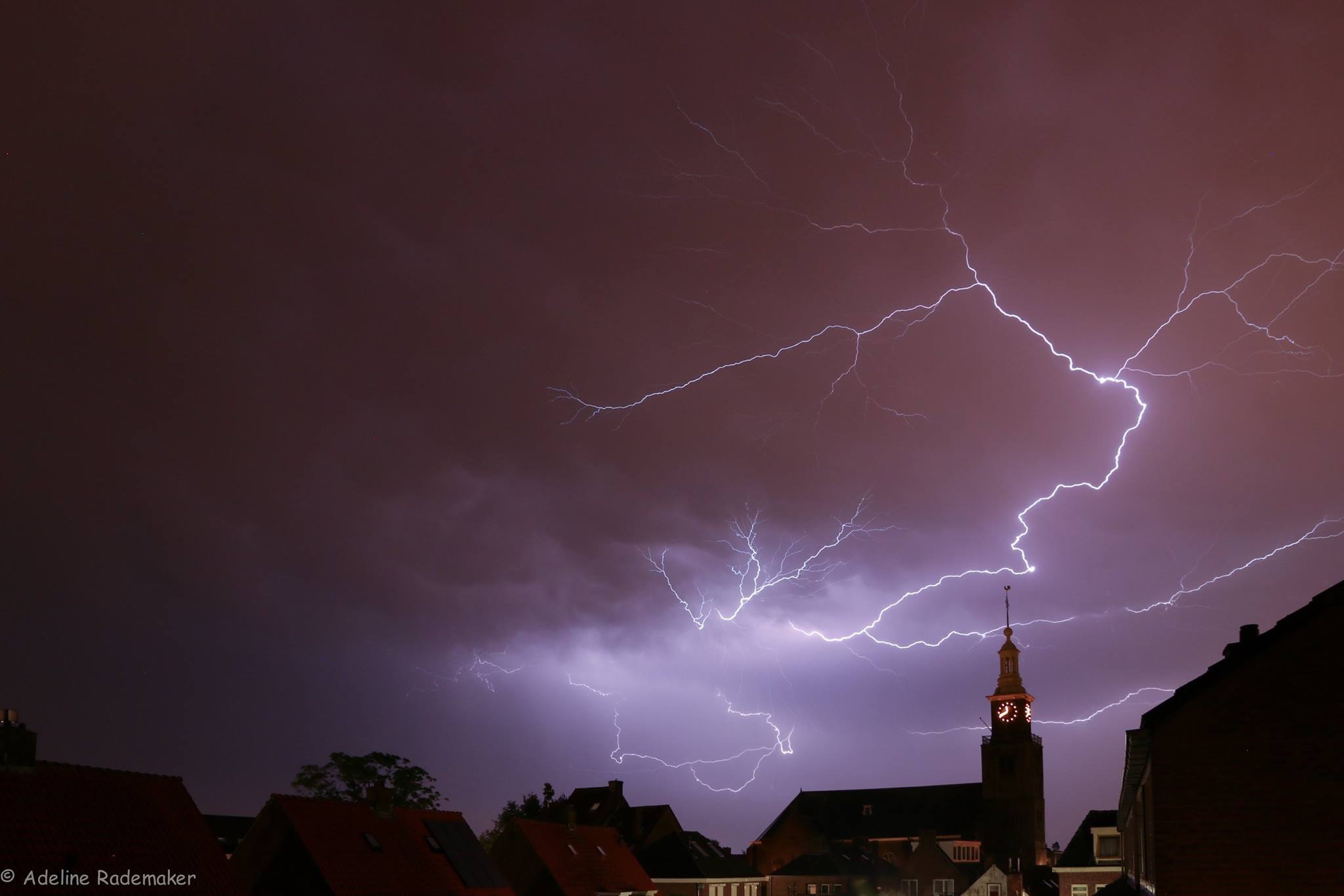 Van uit me huis met langer sluitertijd hopen dat je een mooie flits te pakken krijgt.