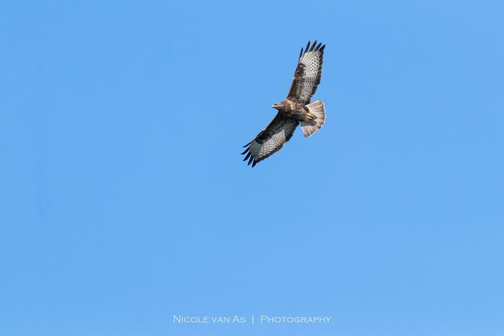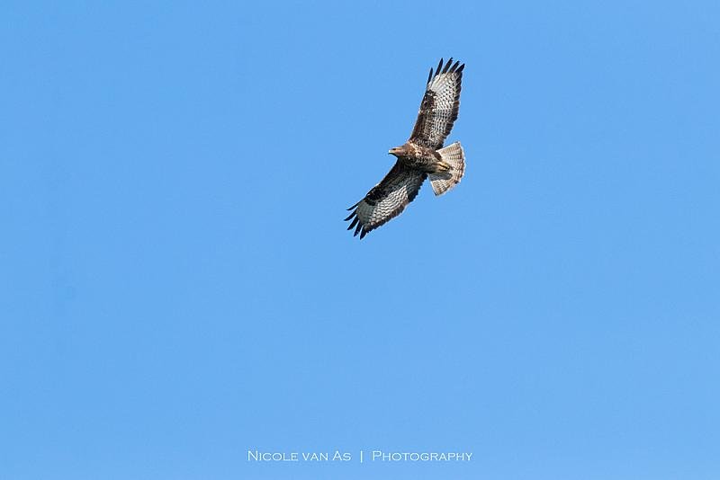 Strak blauwe lucht, vogels zo vrij. De Buizerd op zoek naar een hapje.