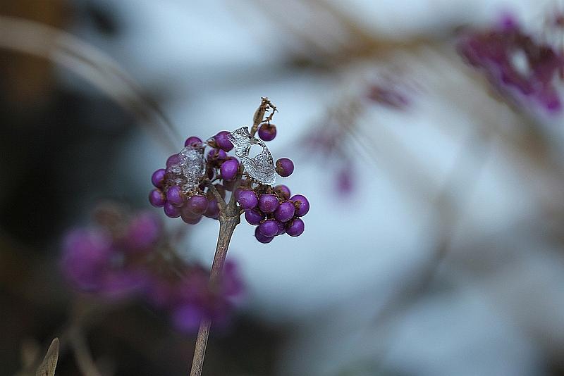 Callicarpa in de smelt-sneeuw