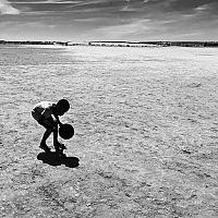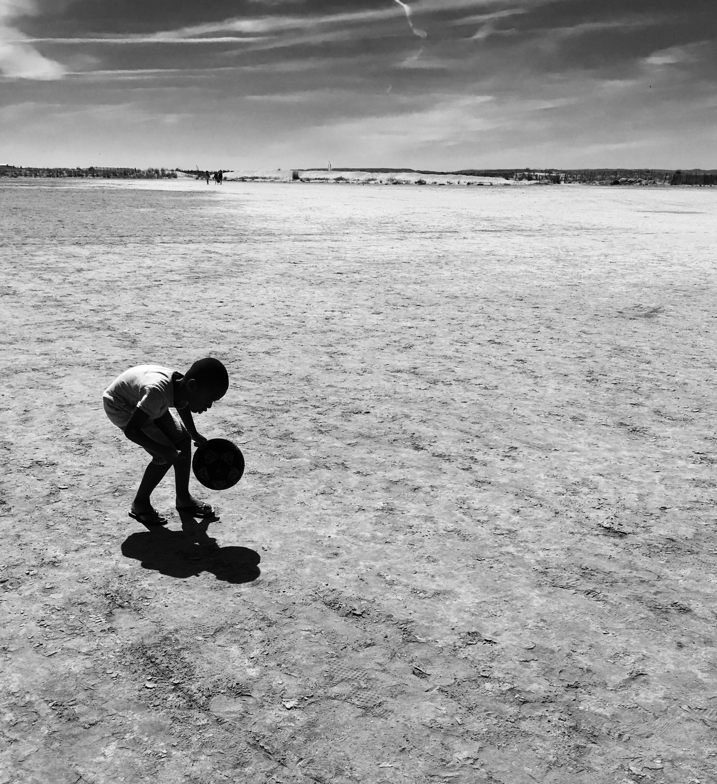 Mijn zoontje op een zandvlakte aan de zuid-Franse kust.