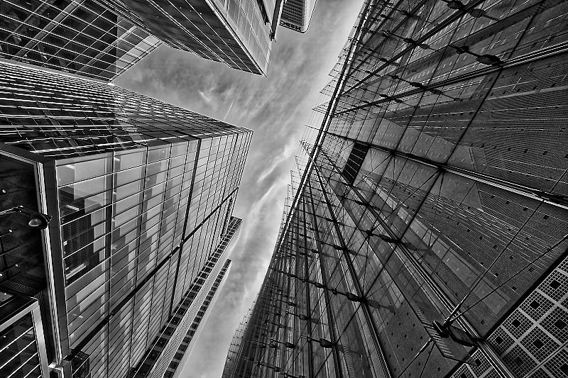 Kantoorgebouwen bij het Canary Wharf metrostation, London, Verenigd Koninkrijk.