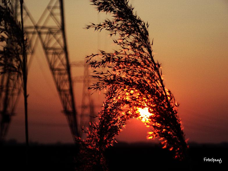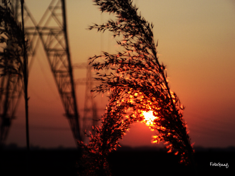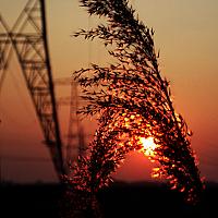 Een mooi detail is het lijnenspel en de symmetrie in deze foto, de graspluimen hebben dezelfde houding als de electriciteitsmasten op de achtergrond.