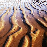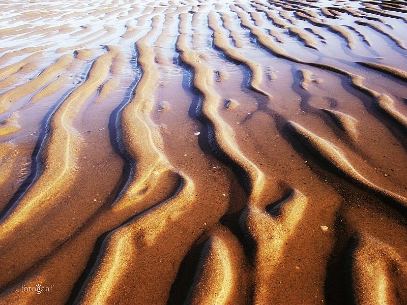 Onder invloed van het zeewater en de getijden ontstaan er aan de kustlijn deze mooie zandribben. Of is het caramelpudding?