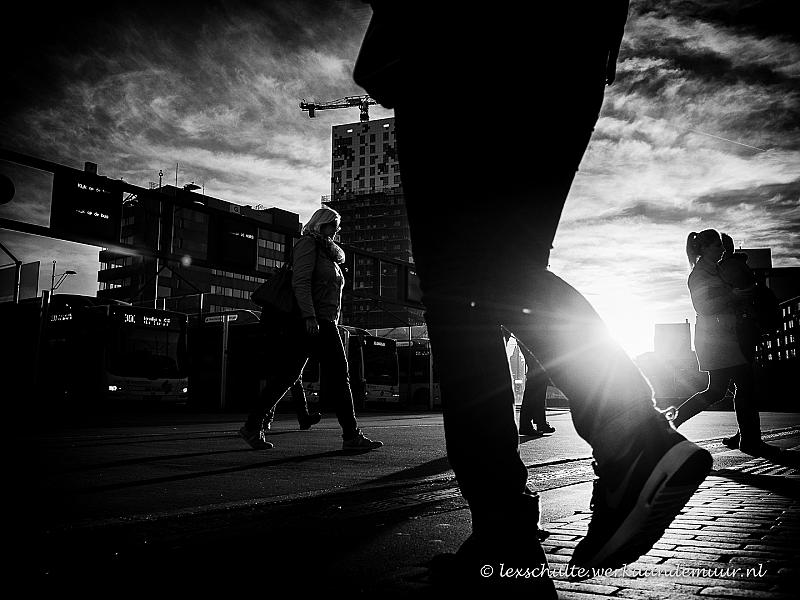 Ochtendlicht op het station van Nijmegen. Door bewust een persoon heel groot in beeld te brengen heb ik een poging gedaan om meer spanning in dese foto te krijgen.