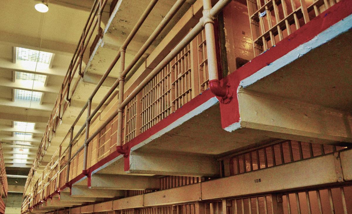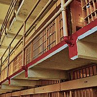 Cellenblok in Alcatraz. Ondanks het vroege uur was het erg druk en alleen mogelijk om leeg en verlaten effect vast te leggen door de gallerij te fotograferen