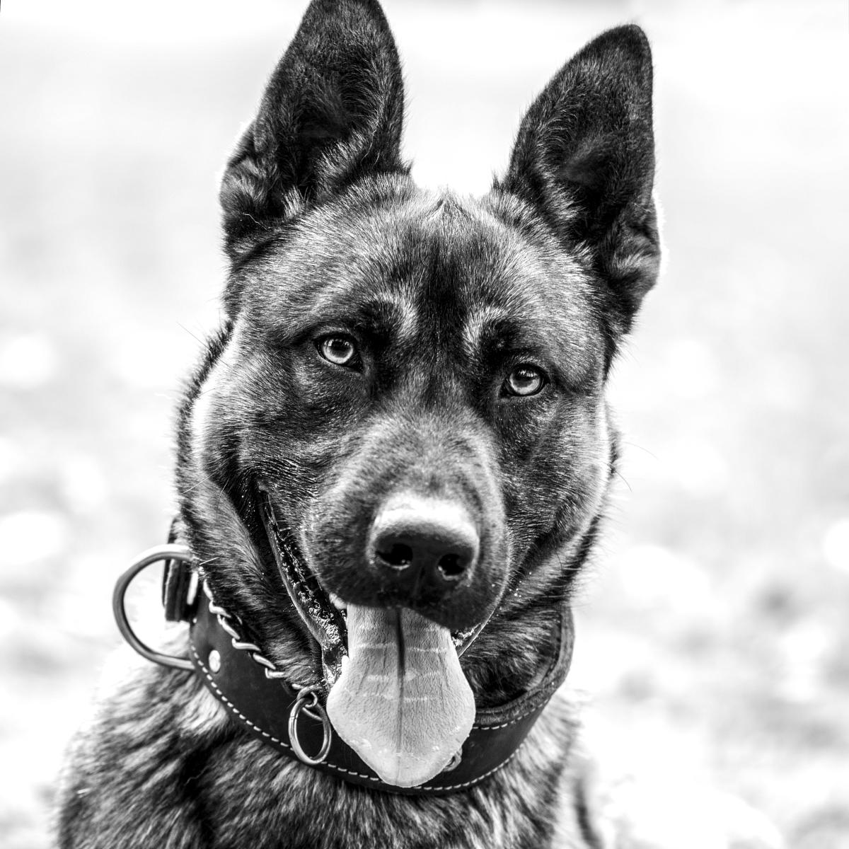 Hondenportret buiten met een duidelijke tekening in het gezicht