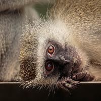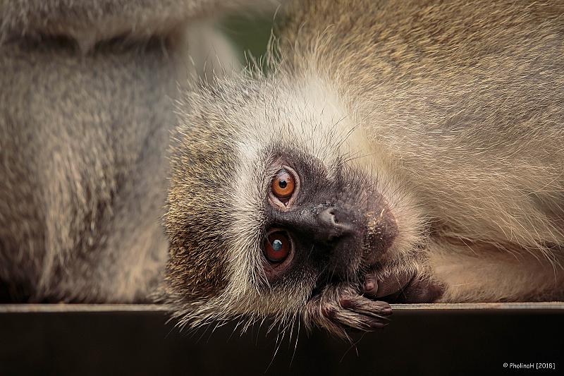 De vervet, Zuid-Afrikaanse groene meerkat of blauwaap, ziet er schattig uit maar is verre van schattig als hij jouw eten steelt.