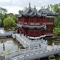 Een prachtige chinese hut met een mooi padje erheen.