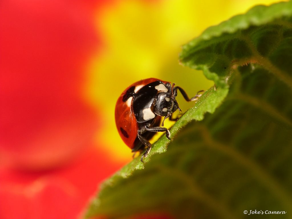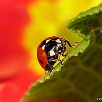 Lieveheersbeestje op mijn rode primula.