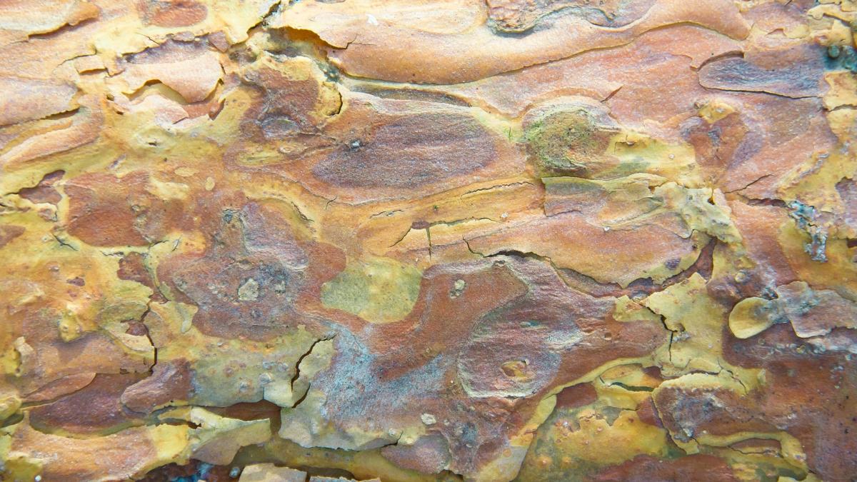 Detail van de bast van de Grove Den , iets waar je zo aan voorbij loopt , maar waar bij nadere beschouwing toch wel prachtige kleurtjes en structuren te zien zijn