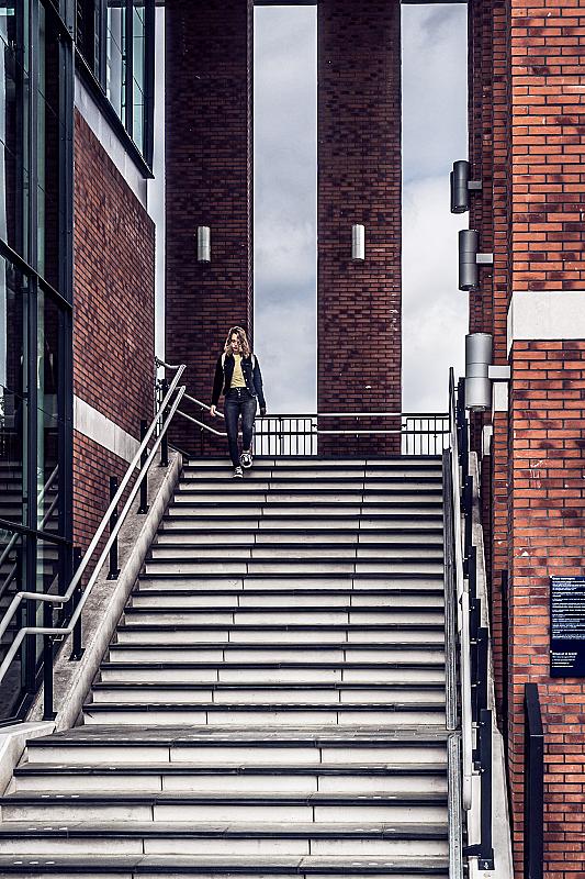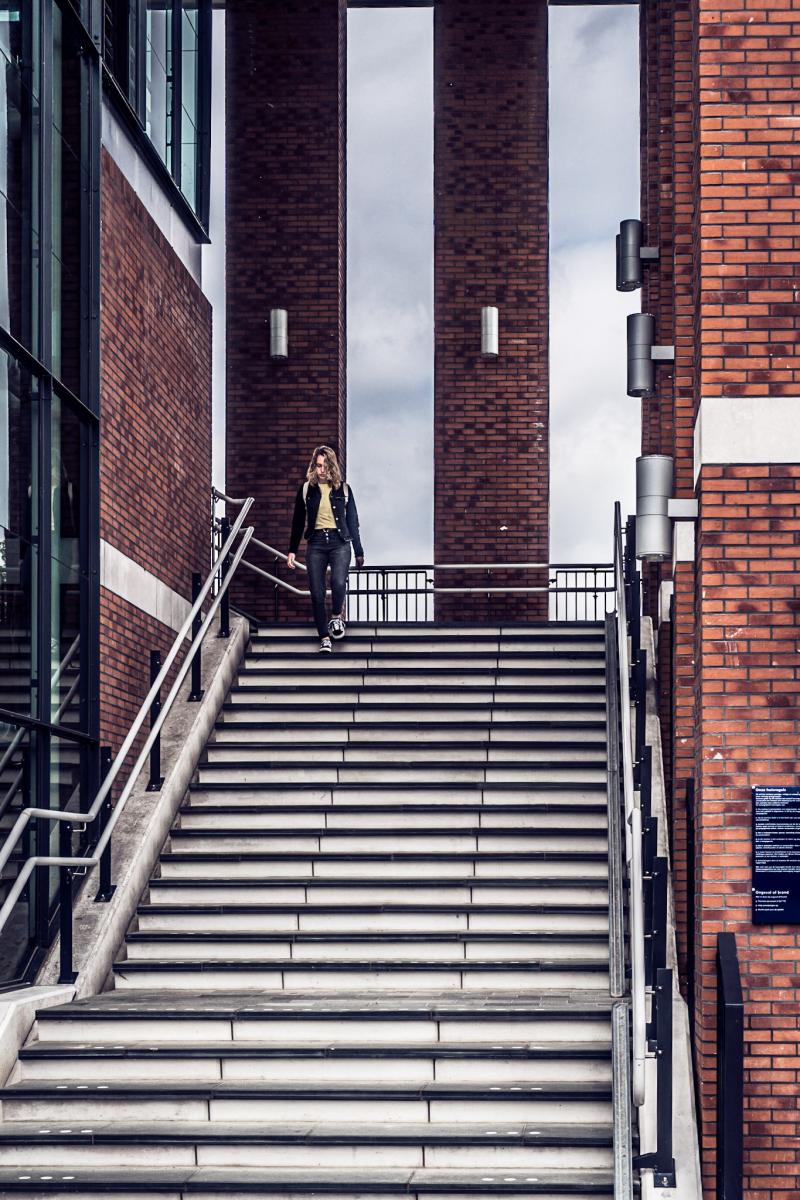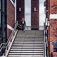 Iemand heeft met de trein gereisd en is op weg naar huis.
