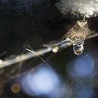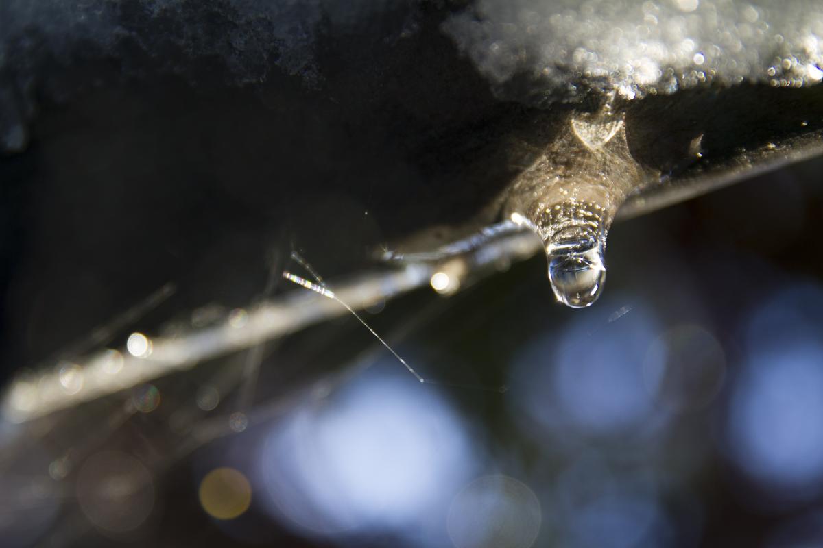 Door de zonnestralen laat ze los de druppel van de sneeuw