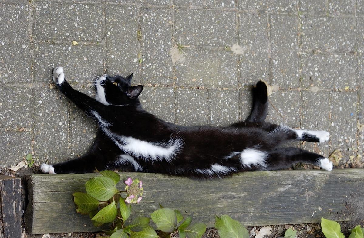 Onze kat rekt zich vol overgave uit