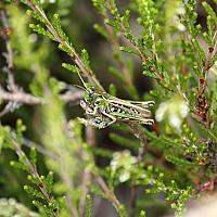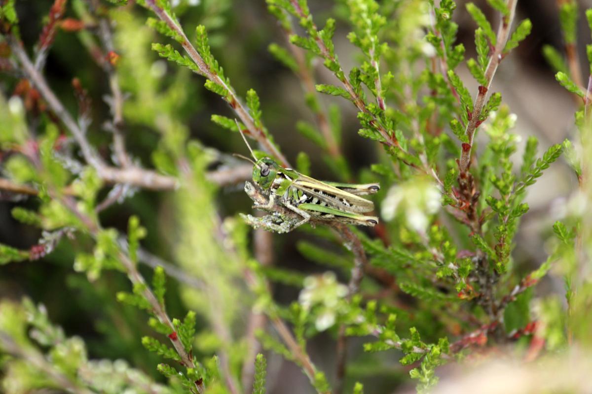 grappig om te zien hoe deze krekel zich vasthoudt aan een heideplantje