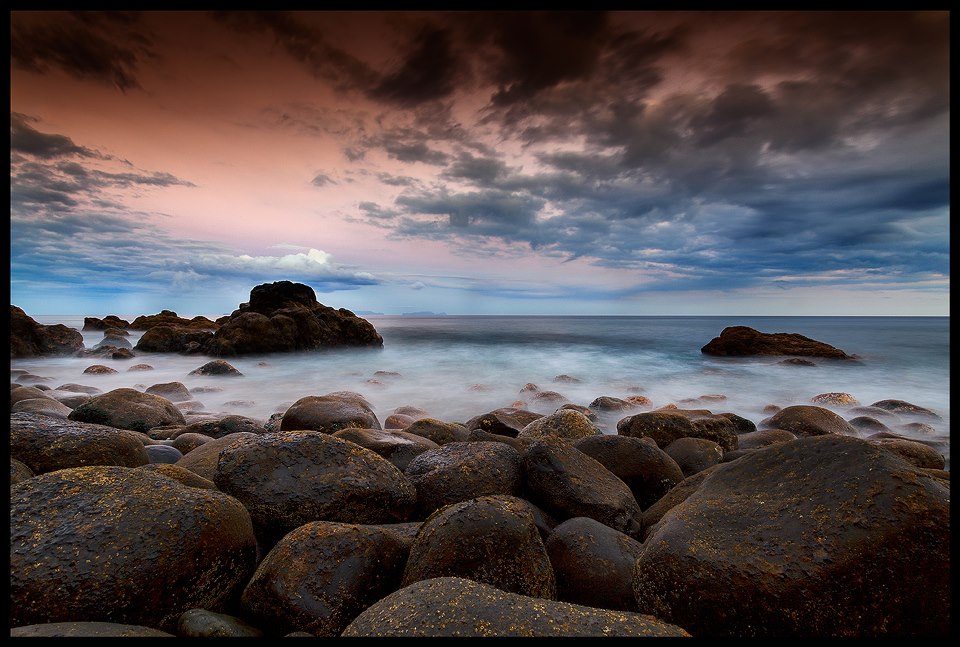 Zonsondergang op het eiland Madeira waar ik lange sluitertijden heb gebruikt om de beweging van zee en wolken vast te leggen met prachtige kleuren.