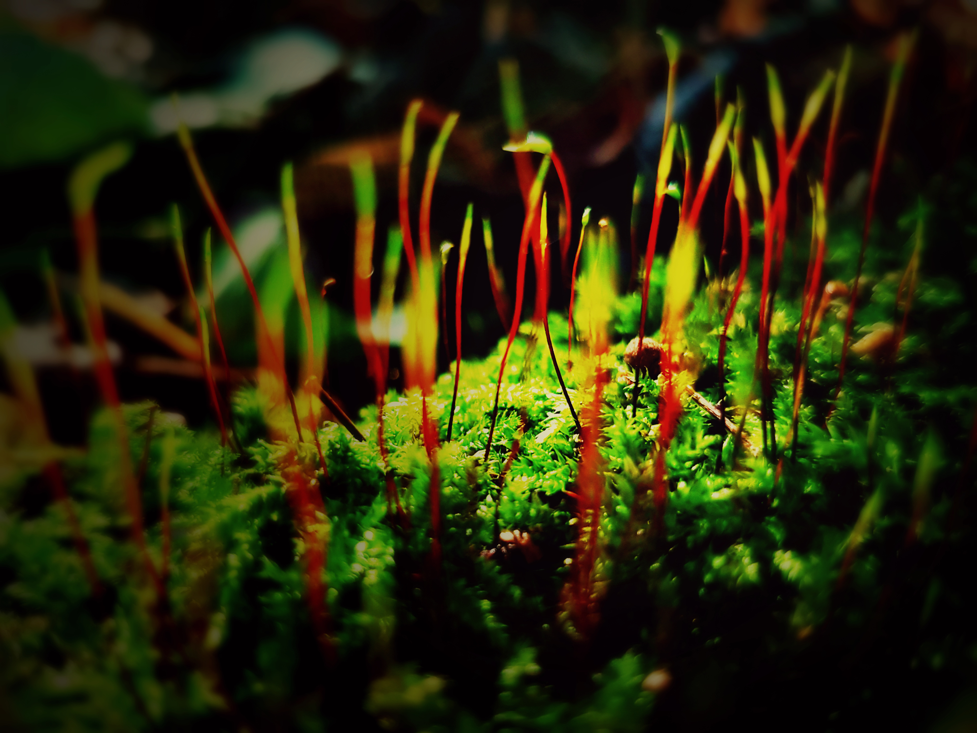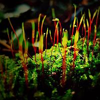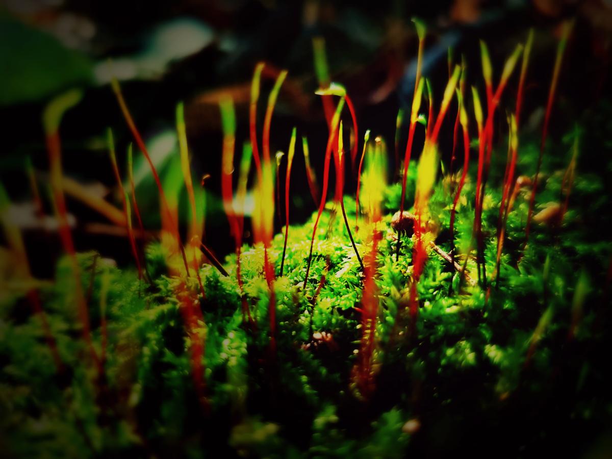 Abstracte kunst in het bos: dit bloeiende mos lijkt wel op een groot dansfeest, iedereen staat te swingen... :)