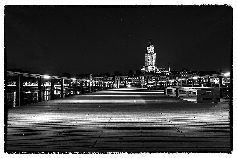 Avond foto van de steiger van het pondje van Deventer.