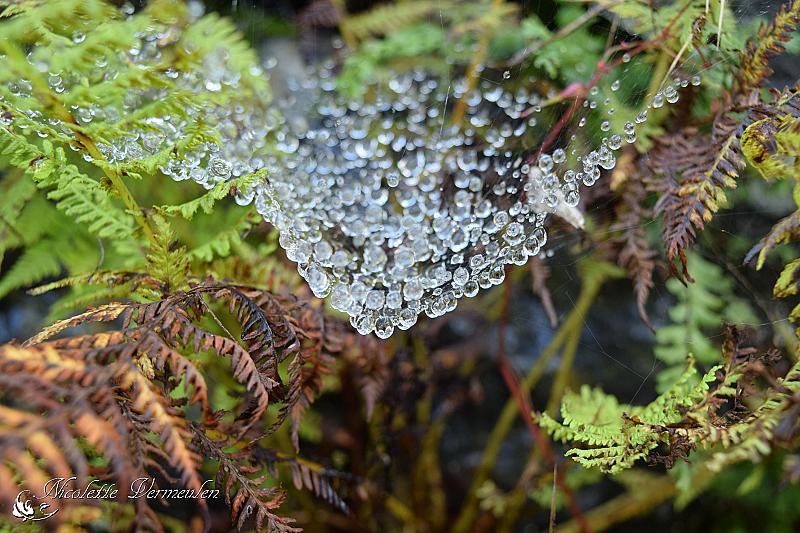 Dauwdruppels in een spinneweb