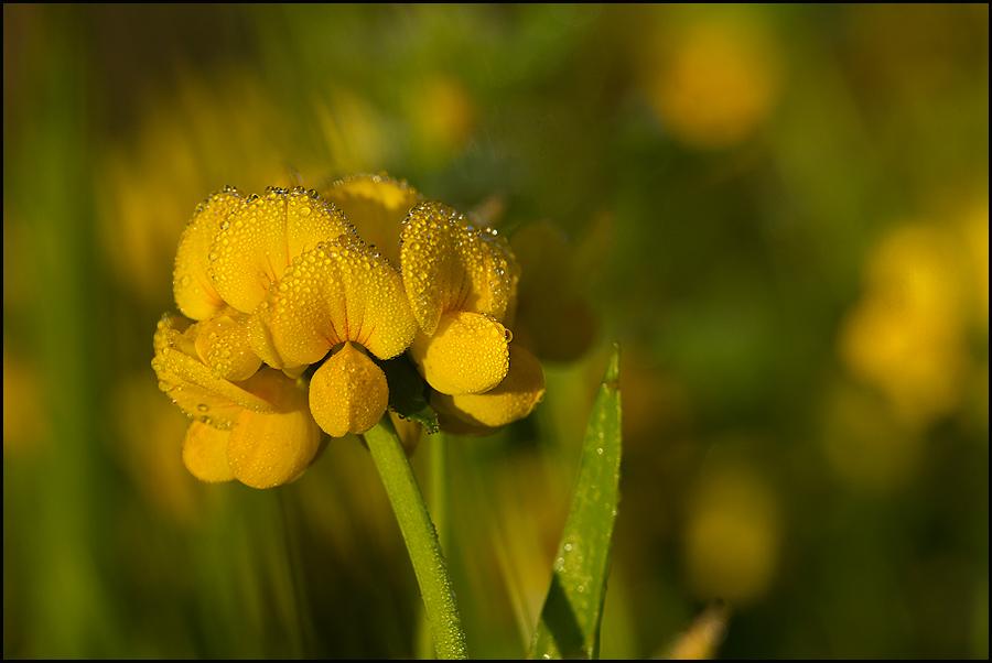 dauwparels op de rolklaver, genomen in de ochtendzon...