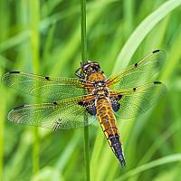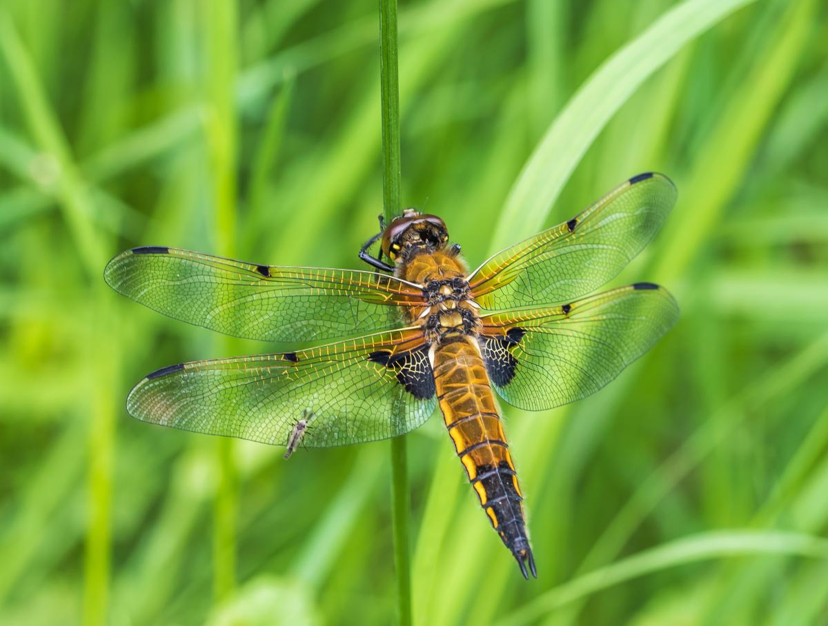 Tijdens het scherpstellen kwam deze bezoeker op de vleugel van de viervlek zitten, na enkele seconden waren beide weg...