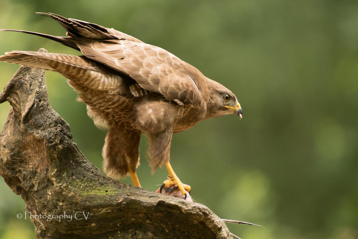De buizerd met prooi