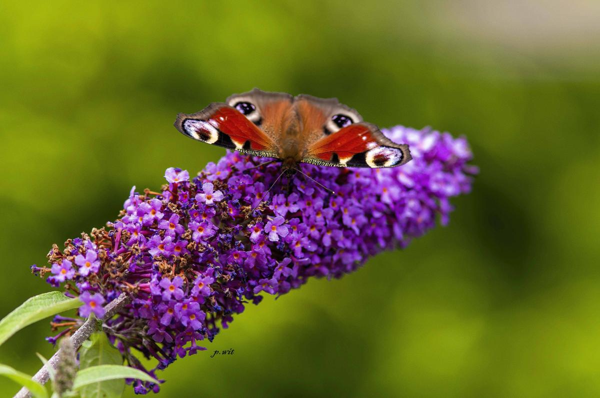 op de vlinder struik