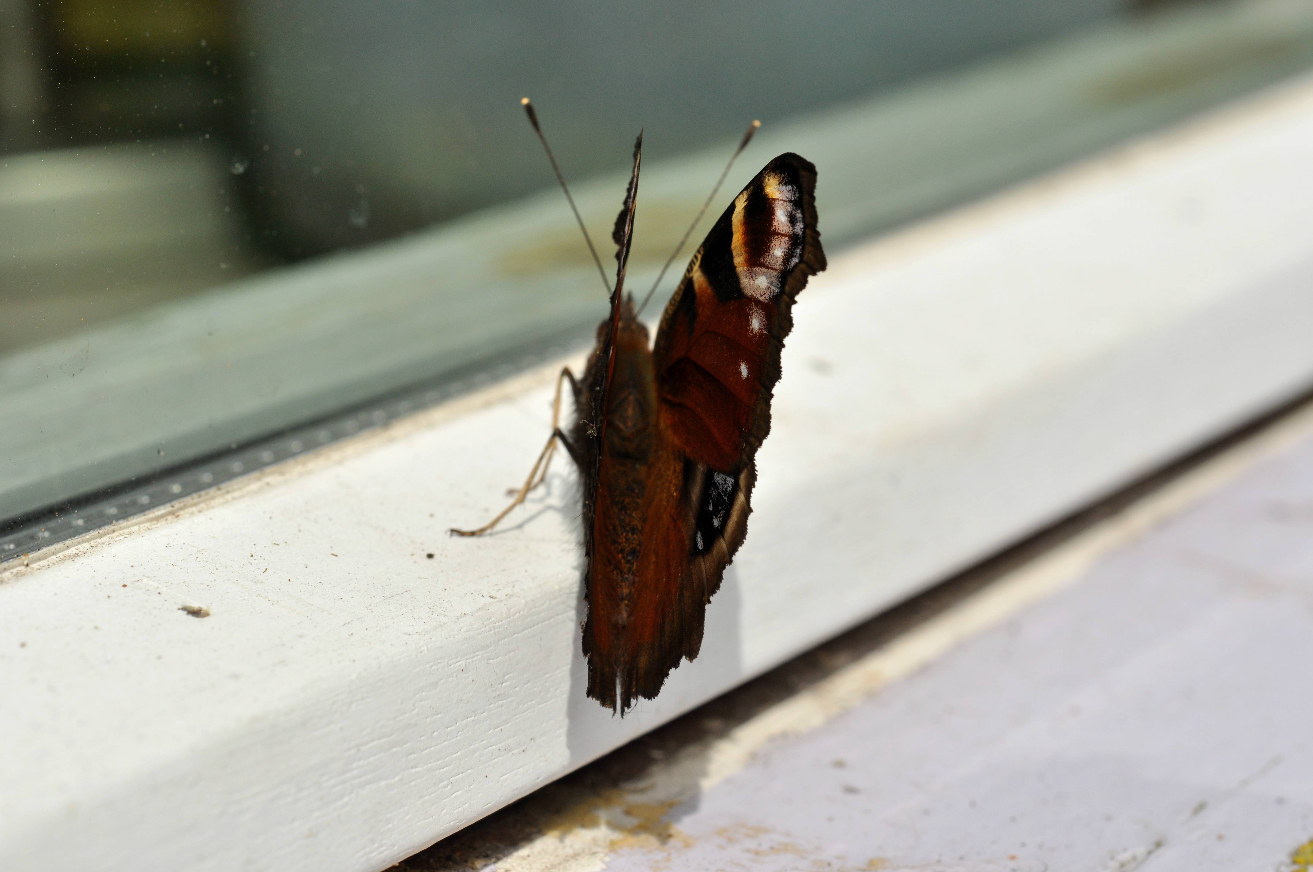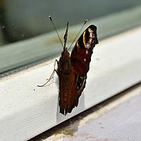De eerste vlinder die ik zag dit jaar streek neer bij het raam. Snel mijn camera gepakt om er een mooie close up van te maken. Prachtige kleuren heeft deze dagpauwoog.