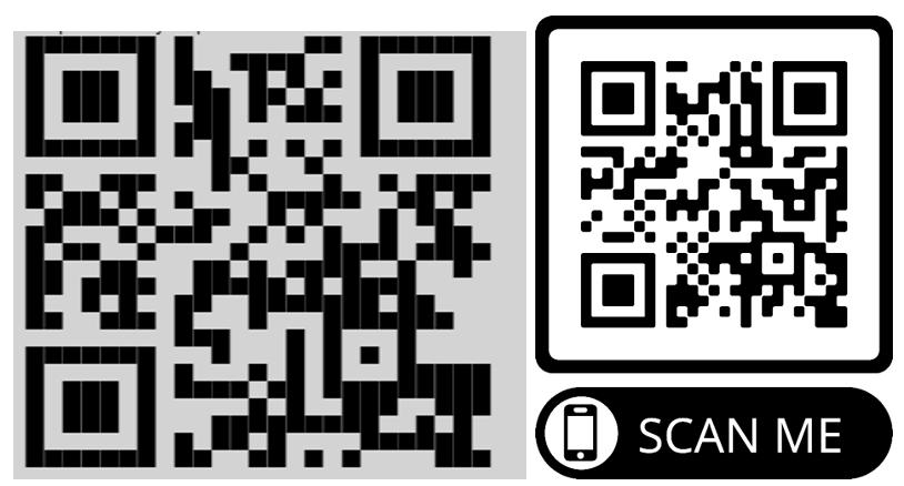 Links: QR-code uit de phishingcampagne. Rechts: standaard QR-code