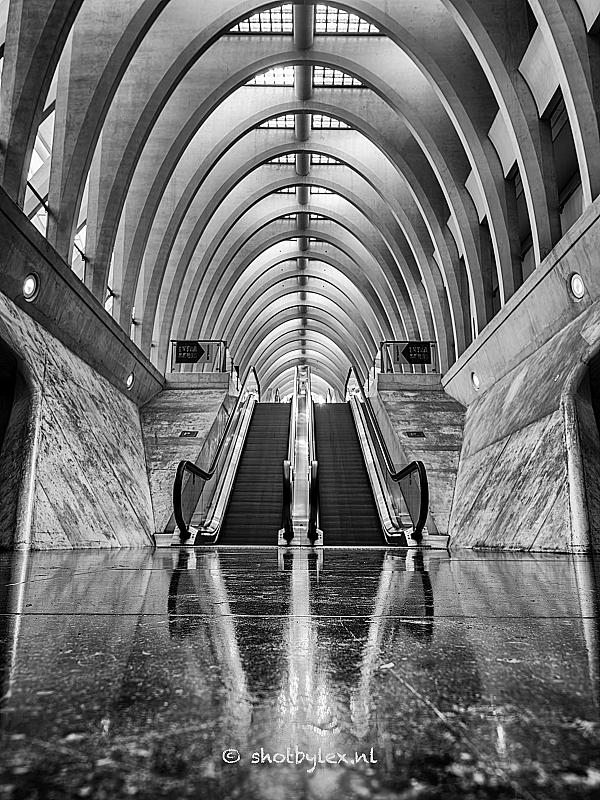 Het station van Luik-Guillemins lijkt op sommige plekken wel een kathedraal, een ode aan het openbaar vervoer. Prachtig als het licht gefilterd door het dak valt.