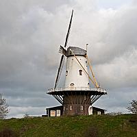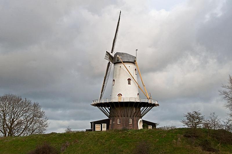 Aan de rand van Veere staat korenmolen De Koe. Gewit in Zeeuwse traditie.